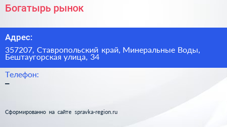 Богатырь, рынок по адресу 357207, Ставропольский край, Минеральные Воды, Бештаугорская улица, 34 в дальнейшем Организация, размещена в следующих категориях: