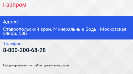 Газпром по адресу Ставропольский край, Минеральные Воды, Московская улица, 18Б в дальнейшем Организация, размещена в следующих категориях: