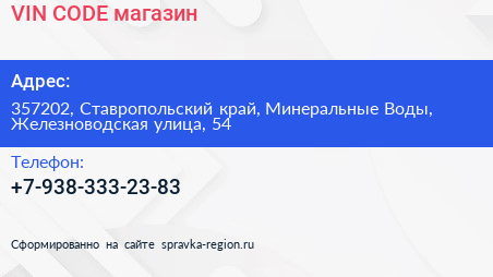 VIN-CODE, магазин по адресу 357202, Ставропольский край, Минеральные Воды, Железноводская улица, 54 в дальнейшем Организация, размещена в следующих категориях: