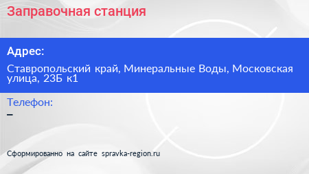 Заправочная станция по адресу Ставропольский край, Минеральные Воды, Московская улица, 23Б к1 в дальнейшем Организация, размещена в следующих категориях: