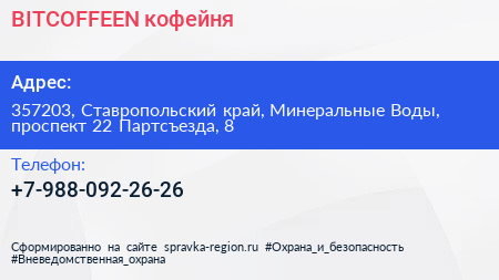 BITCOFFEEN, кофейня по адресу 357203, Ставропольский край, Минеральные Воды, проспект 22 Партсъезда, 8 в дальнейшем Организация, размещена в следующих категориях: