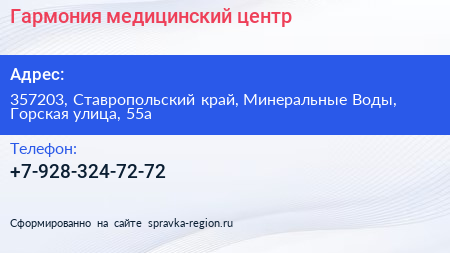 Гармония, медицинский центр по адресу 357203, Ставропольский край, Минеральные Воды, Горская улица, 55а в дальнейшем Организация, размещена в следующих категориях: