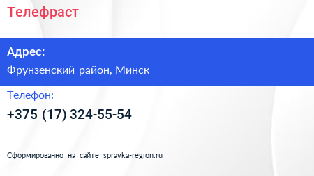 Телефраст по адресу Фрунзенский район, Минск в дальнейшем Организация, размещена в следующих категориях: