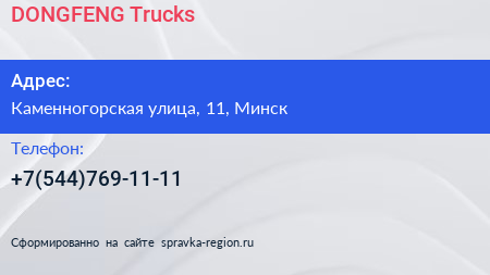 DONGFENG Trucks по адресу Каменногорская улица, 11, Минск в дальнейшем Организация, размещена в следующих категориях: