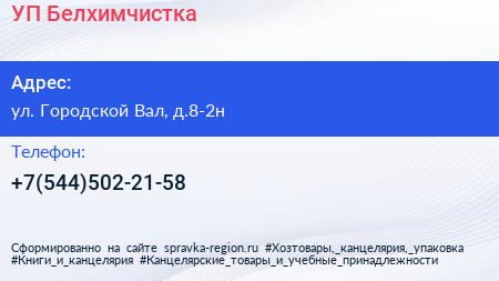 УП «Белхимчистка» по адресу ул. Городской Вал, д.8-2н в дальнейшем Организация, размещена в следующих категориях: