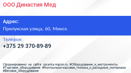 ООО «Династия Мед» по адресу Прилукская улица, 60, Минск в дальнейшем Организация, размещена в следующих категориях: