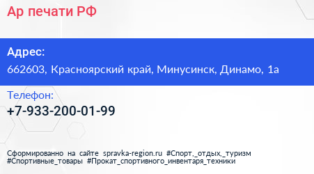 Ар-печати.РФ по адресу 662603, Красноярский край, Минусинск, Динамо, 1а в дальнейшем Организация, размещена в следующих категориях:
