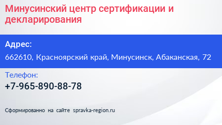 Минусинский центр сертификации и декларирования по адресу 662610, Красноярский край, Минусинск, Абаканская, 72 в дальнейшем Организация, размещена в следующих категориях: