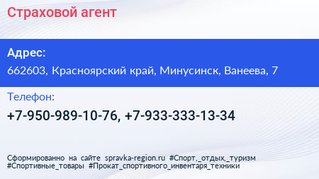 Страховой агент по адресу 662603, Красноярский край, Минусинск, Ванеева, 7 в дальнейшем Организация, размещена в следующих категориях: