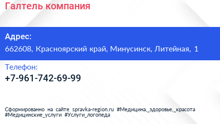 Галтель, компания по адресу 662608, Красноярский край, Минусинск, Литейная, 1 в дальнейшем Организация, размещена в следующих категориях: