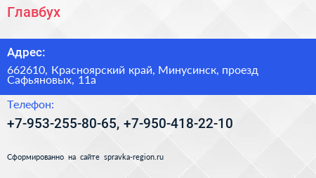 Главбух по адресу 662610, Красноярский край, Минусинск, проезд Сафьяновых, 11а в дальнейшем Организация, размещена в следующих категориях: