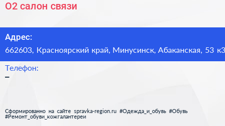 О2, салон связи по адресу 662603, Красноярский край, Минусинск, Абаканская, 53 к3 в дальнейшем Организация, размещена в следующих категориях: