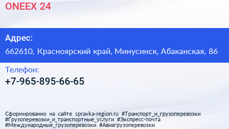 ONEEX`24 по адресу 662610, Красноярский край, Минусинск, Абаканская, 86 в дальнейшем Организация, размещена в следующих категориях: