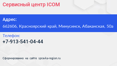 Сервисный центр ICOM по адресу 662606, Красноярский край, Минусинск, Абаканская, 50а в дальнейшем Организация, размещена в следующих категориях: