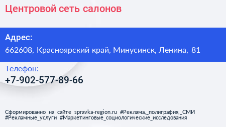 Центровой, сеть салонов по адресу 662608, Красноярский край, Минусинск, Ленина, 81 в дальнейшем Организация, размещена в следующих категориях: