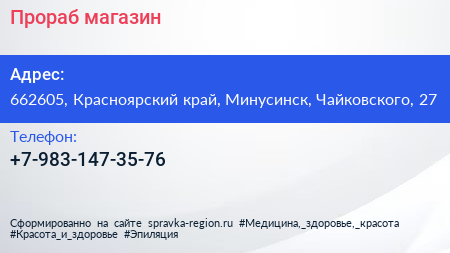 Прораб, магазин по адресу 662605, Красноярский край, Минусинск, Чайковского, 27 в дальнейшем Организация, размещена в следующих категориях: