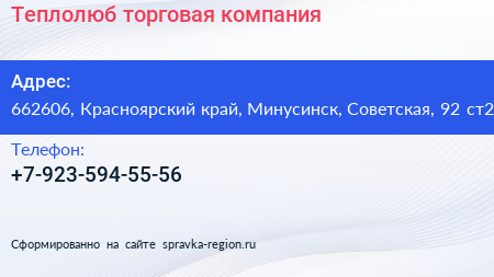 Теплолюб, торговая компания по адресу 662606, Красноярский край, Минусинск, Советская, 92 ст2 в дальнейшем Организация, размещена в следующих категориях: