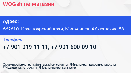 WOGshine, магазин по адресу 662610, Красноярский край, Минусинск, Абаканская, 58 в дальнейшем Организация, размещена в следующих категориях: