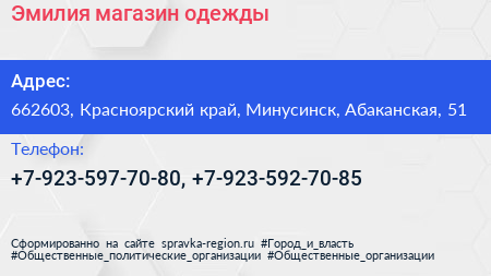 Эмилия, магазин одежды по адресу 662603, Красноярский край, Минусинск, Абаканская, 51 в дальнейшем Организация, размещена в следующих категориях: