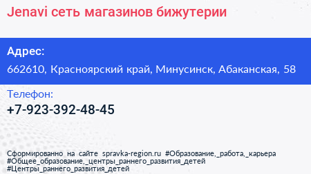 Jenavi, сеть магазинов бижутерии по адресу 662610, Красноярский край, Минусинск, Абаканская, 58 в дальнейшем Организация, размещена в следующих категориях: