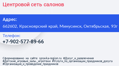 Центровой, сеть салонов по адресу 662602, Красноярский край, Минусинск, Октябрьская, 93г в дальнейшем Организация, размещена в следующих категориях: