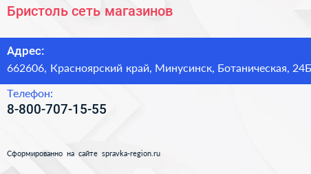 Бристоль, сеть магазинов по адресу 662606, Красноярский край, Минусинск, Ботаническая, 24Б в дальнейшем Организация, размещена в следующих категориях: