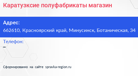 Каратузксие полуфабрикаты, магазин по адресу 662610, Красноярский край, Минусинск, Ботаническая, 34 в дальнейшем Организация, размещена в следующих категориях: