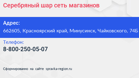 Серебряный шар, сеть магазинов по адресу 662605, Красноярский край, Минусинск, Чайковского, 74Б в дальнейшем Организация, размещена в следующих категориях:
