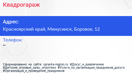 Квадрогараж по адресу Красноярский край, Минусинск, Боровое, 12 в дальнейшем Организация, размещена в следующих категориях: