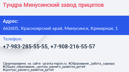 Тундра, Минусинский завод прицепов по адресу 662605, Красноярский край, Минусинск, Крекерная, 1 в дальнейшем Организация, размещена в следующих категориях: