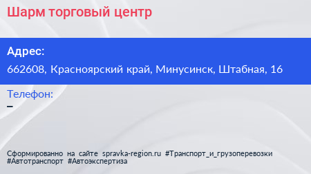 Шарм, торговый центр по адресу 662608, Красноярский край, Минусинск, Штабная, 16 в дальнейшем Организация, размещена в следующих категориях: