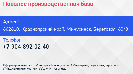 Новалес, производственная база по адресу 662610, Красноярский край, Минусинск, Береговая, 60/3 в дальнейшем Организация, размещена в следующих категориях: