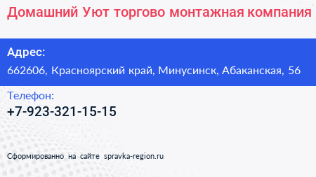 Домашний Уют, торгово-монтажная компания по адресу 662606, Красноярский край, Минусинск, Абаканская, 56 в дальнейшем Организация, размещена в следующих категориях: