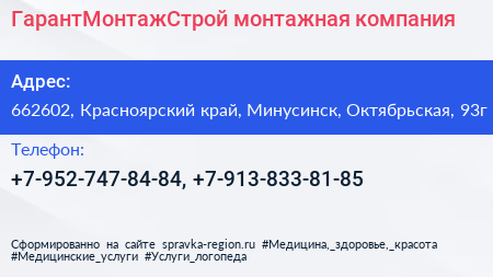 ГарантМонтажСтрой, монтажная компания по адресу 662602, Красноярский край, Минусинск, Октябрьская, 93г в дальнейшем Организация, размещена в следующих категориях: