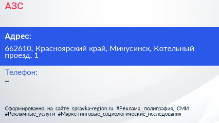 АЗС по адресу 662610, Красноярский край, Минусинск, Котельный проезд, 1 в дальнейшем Организация, размещена в следующих категориях: