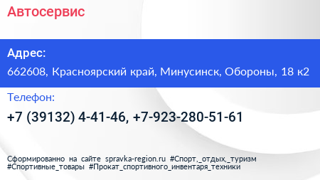 Автосервис по адресу 662608, Красноярский край, Минусинск, Обороны, 18 к2 в дальнейшем Организация, размещена в следующих категориях:
