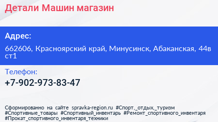 Детали Машин, магазин по адресу 662606, Красноярский край, Минусинск, Абаканская, 44в ст1 в дальнейшем Организация, размещена в следующих категориях: