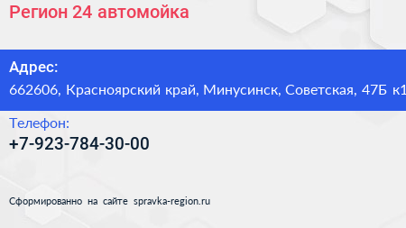 Регион 24, автомойка по адресу 662606, Красноярский край, Минусинск, Советская, 47Б к1 в дальнейшем Организация, размещена в следующих категориях: