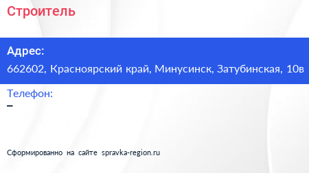 Строитель по адресу 662602, Красноярский край, Минусинск, Затубинская, 10в в дальнейшем Организация, размещена в следующих категориях: