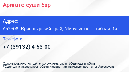 Аригато, суши-бар по адресу 662608, Красноярский край, Минусинск, Штабная, 1а в дальнейшем Организация, размещена в следующих категориях: