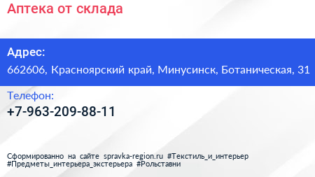 Аптека от склада по адресу 662606, Красноярский край, Минусинск, Ботаническая, 31 в дальнейшем Организация, размещена в следующих категориях: