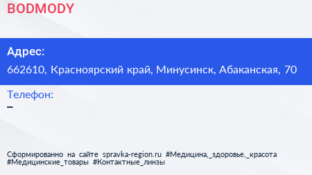 BODMODY по адресу 662610, Красноярский край, Минусинск, Абаканская, 70 в дальнейшем Организация, размещена в следующих категориях: