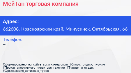 МейТан, торговая компания по адресу 662608, Красноярский край, Минусинск, Октябрьская, 66 в дальнейшем Организация, размещена в следующих категориях: