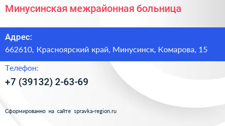 Минусинская межрайонная больница по адресу 662610, Красноярский край, Минусинск, Комарова, 15 в дальнейшем Организация, размещена в следующих категориях: