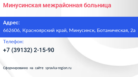 Минусинская межрайонная больница по адресу 662606, Красноярский край, Минусинск, Ботаническая, 2а в дальнейшем Организация, размещена в следующих категориях: