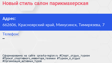 Новый стиль, салон-парикмахерская по адресу 662606, Красноярский край, Минусинск, Тимирязева, 7 в дальнейшем Организация, размещена в следующих категориях: