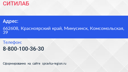 СИТИЛАБ по адресу 662608, Красноярский край, Минусинск, Комсомольская, 39 в дальнейшем Организация, размещена в следующих категориях: