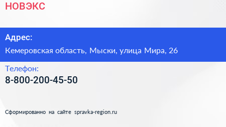 НОВЭКС по адресу Кемеровская область, Мыски, улица Мира, 26 в дальнейшем Организация, размещена в следующих категориях: