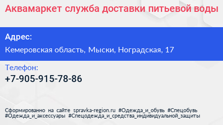 Аквамаркет, служба доставки питьевой воды по адресу Кемеровская область, Мыски, Ноградская, 17 в дальнейшем Организация, размещена в следующих категориях: