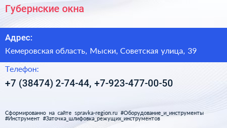 Губернские окна по адресу Кемеровская область, Мыски, Советская улица, 39 в дальнейшем Организация, размещена в следующих категориях: